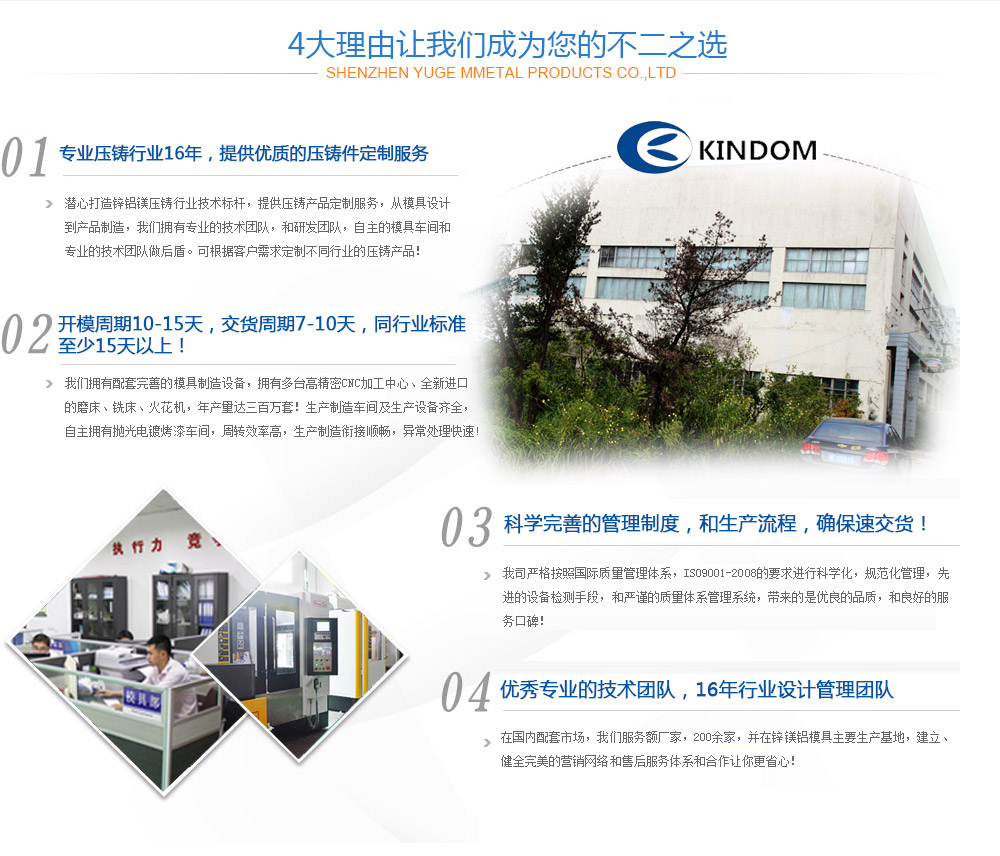 浙江錦恒金屬制品有限公司前身為海寧長(zhǎng)命摩擦材料有限公司,創(chuàng)建于2002年,是一家集模具設(shè)計(jì)、制造、鋁合金、鋅合金壓鑄、沖壓加工、表面處理為一體的專業(yè)制造公司,為汽車、摩托車、沙灘車、燈具、網(wǎng)絡(luò)天線、監(jiān)控設(shè)備等行業(yè)提供精密壓鑄件及精密沖壓件。
